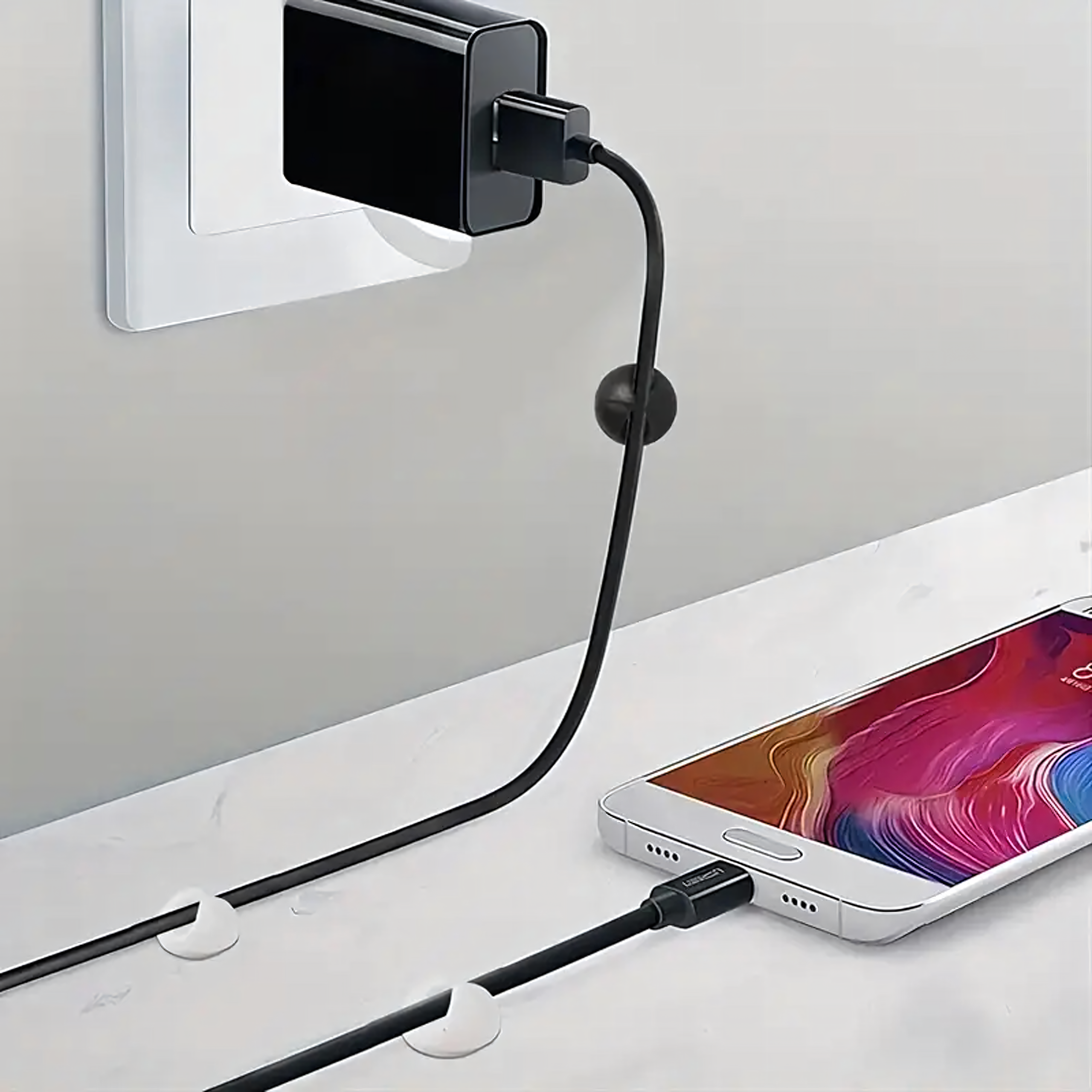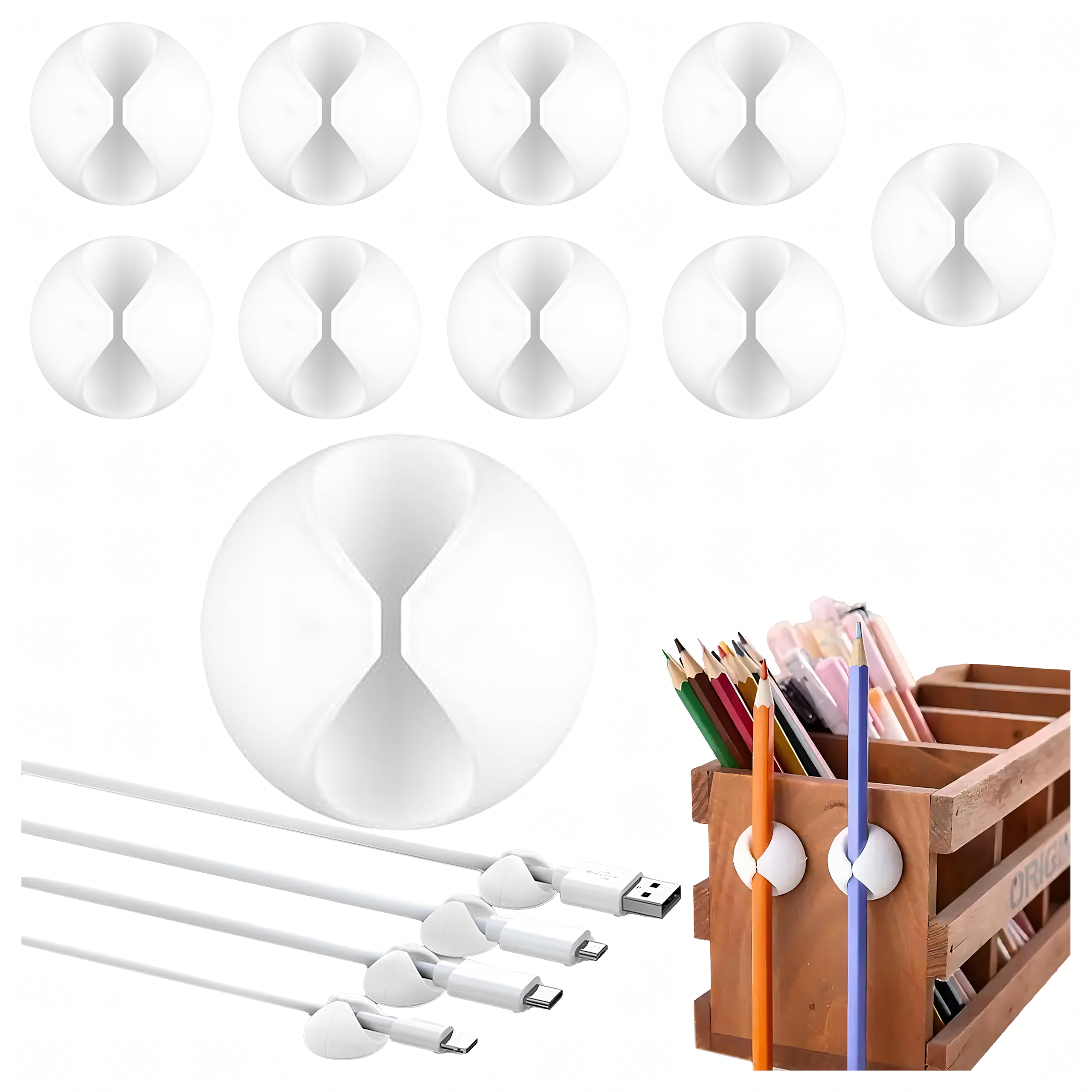Zestaw 10 organizerów do kabli – praktyczne klipsy samoprzylepne, które pomogą Ci utrzymać porządek w przewodach w domu, biurze i samochodzie. Wykonane z elastycznego i wytrzymałego tworzywa, łatwe w montażu i uniwersalne w użyciu. Idealne do kabli, słuchawek, długopisów czy ozdób.