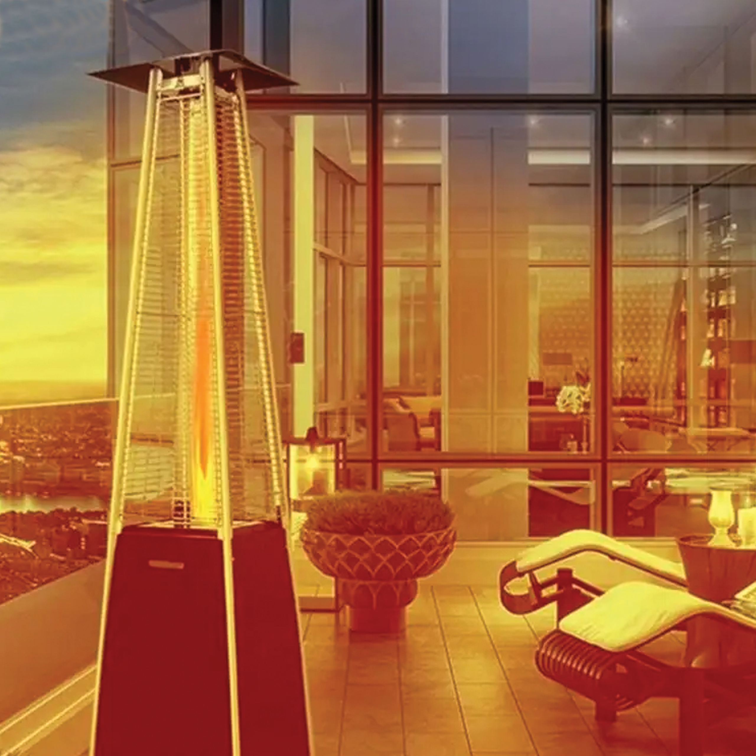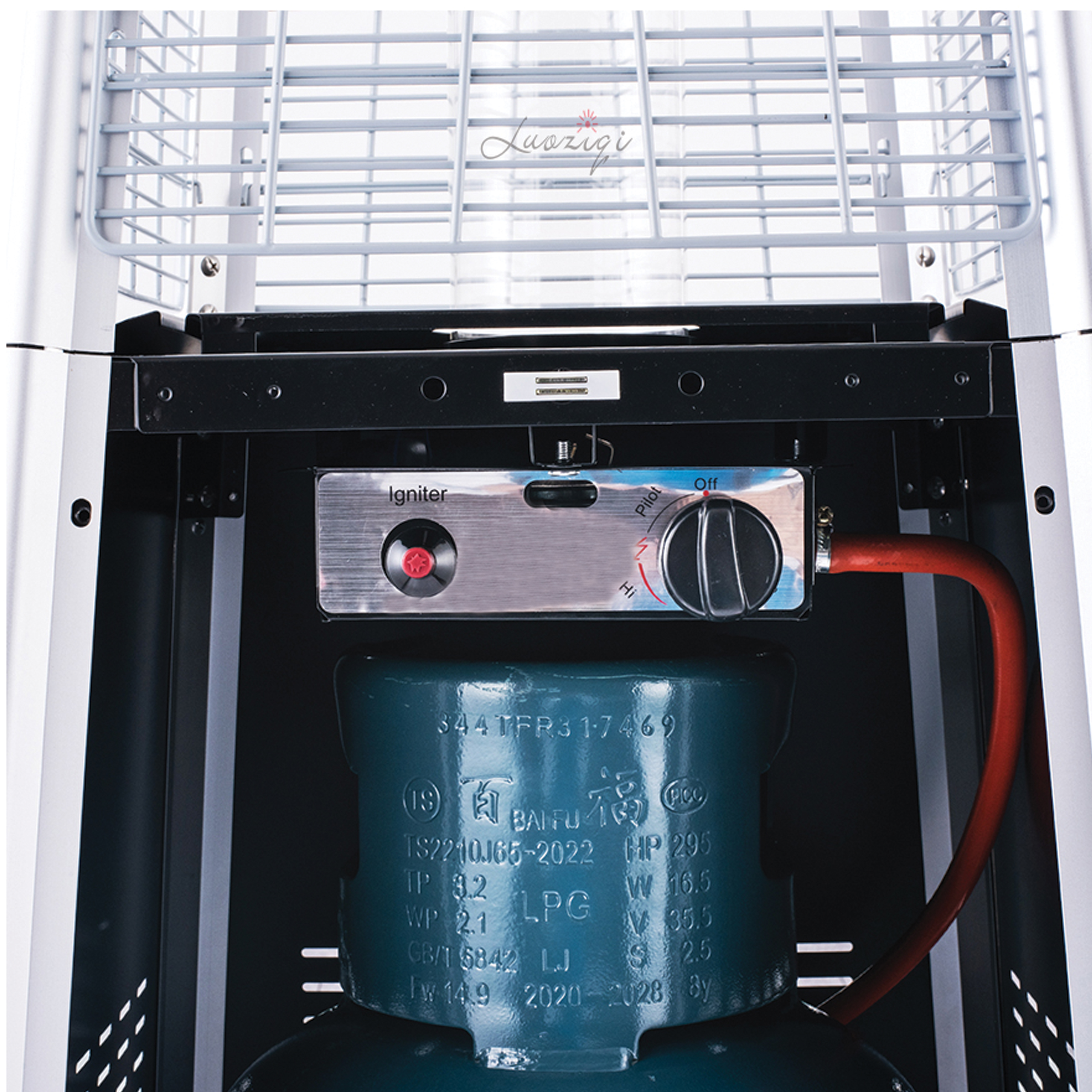 Elegancki i funkcjonalny parasol gazowy do zastosowania zewnętrznego. Wyposażony w spiralny płomień widoczny przez kwarcową tubę, gwarantuje zarówno komfort cieplny, jak i efektowny wygląd. Doskonały do użytku w ogródkach restauracyjnych, tarasach, pawilonach i w warunkach domowych.