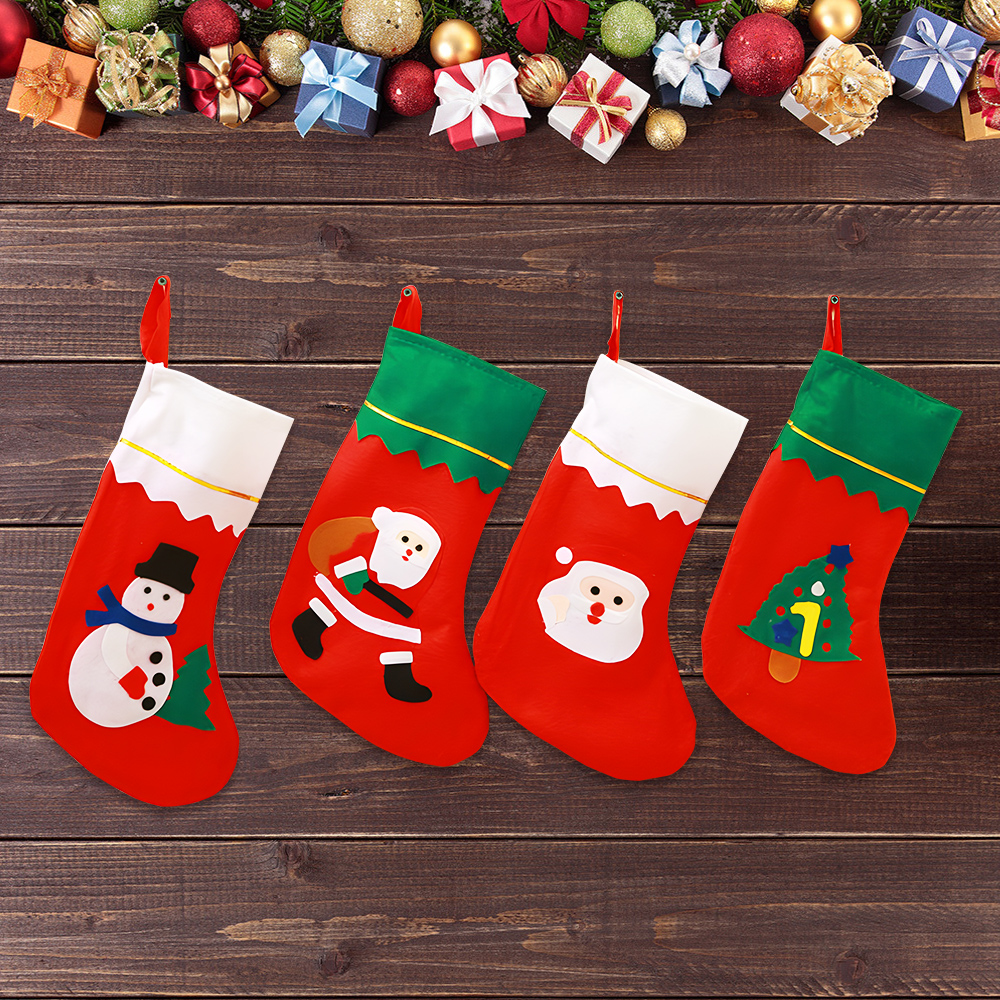 Tradycyjny świąteczny gadżet: czerwona skarpeta na prezenty. Wykonana jest z przyjemnego w dotyku filcu/flizeliny. Skarpetę można wykorzystać do pakowania niewielkich upominków.