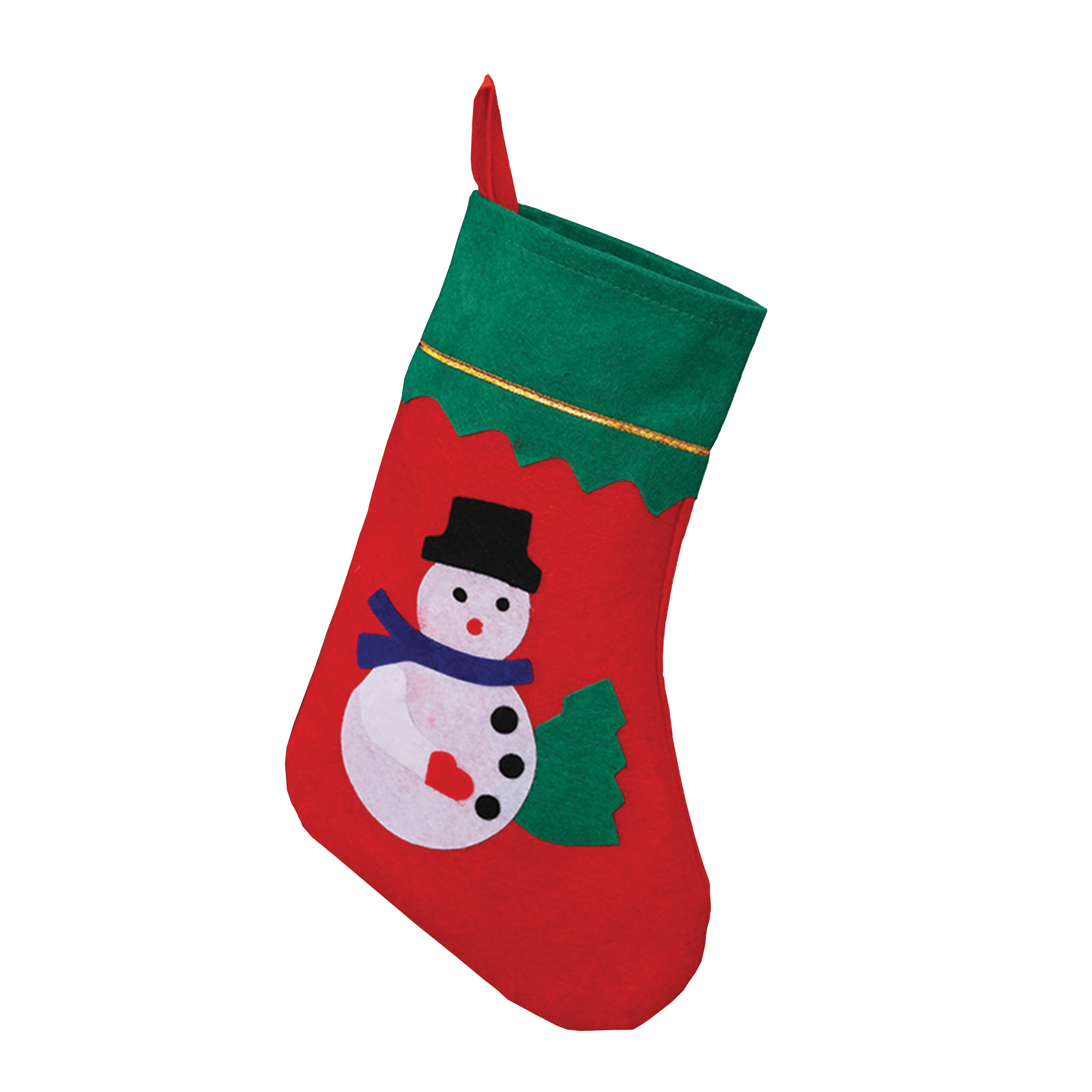 Skarpeta Bałwanka z motywem świątecznym w typowych świątecznych kolorach na łakocie dla dzieci. Dzięki pętelce można ją zawiesić w dowolnym miejscu.