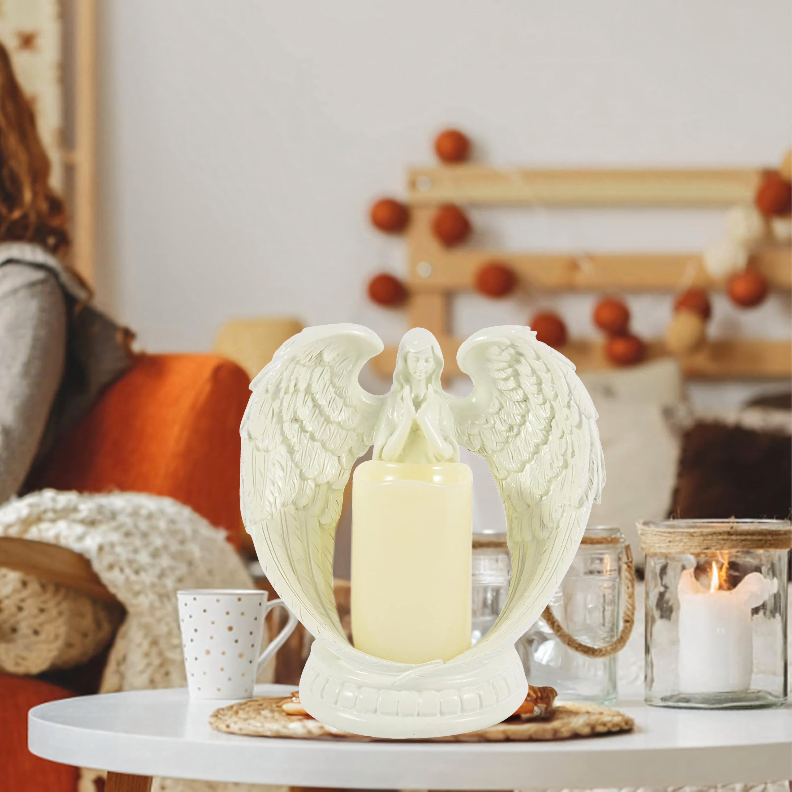 Anioł LED ze świeczką – elegancki świecznik z realistycznym światłem LED. Wykonany z polerowanej żywicy, symbolizuje spokój, pamięć i błogosławieństwo. Idealny jako dekoracja do domu, na uroczystości religijne, grób czy jako wyjątkowy prezent.