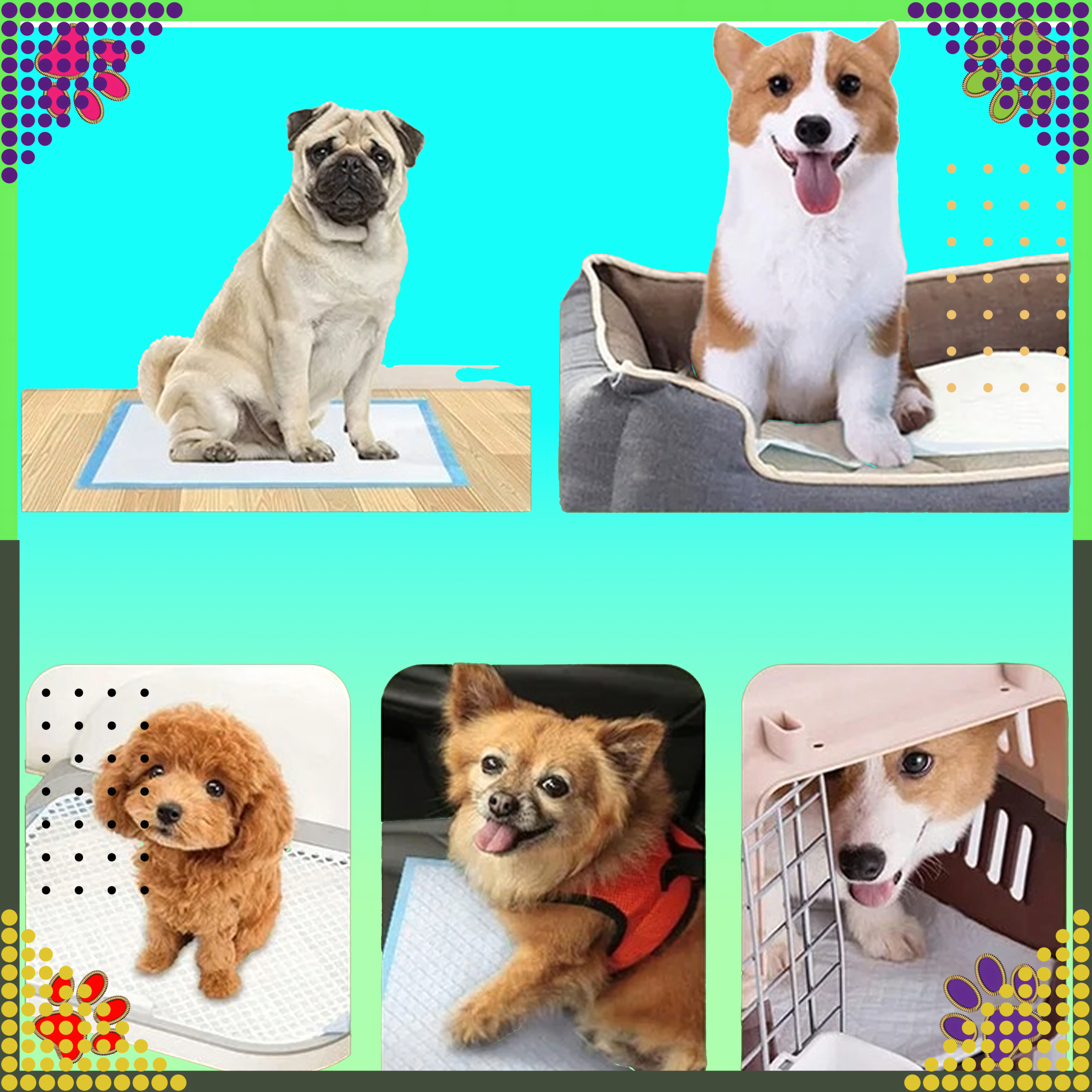 Idealne dla zwierząt domowych takich jak psy, koty, króliki, chomiku. Te niezawodne maty są nieocenione podczas szkolenia szczeniąt, pomocne dla starszych psów z problemami zdrowotnymi oraz dla każdego pupila w trakcie podróży lub zmiany otoczenia.