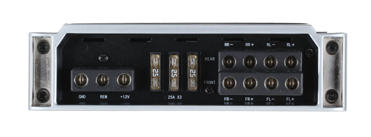 Moc wyjściowa (RMS) @ 14,4V / 4 Ohm (3 kanały): 125 W x 2 + 400 W x 1