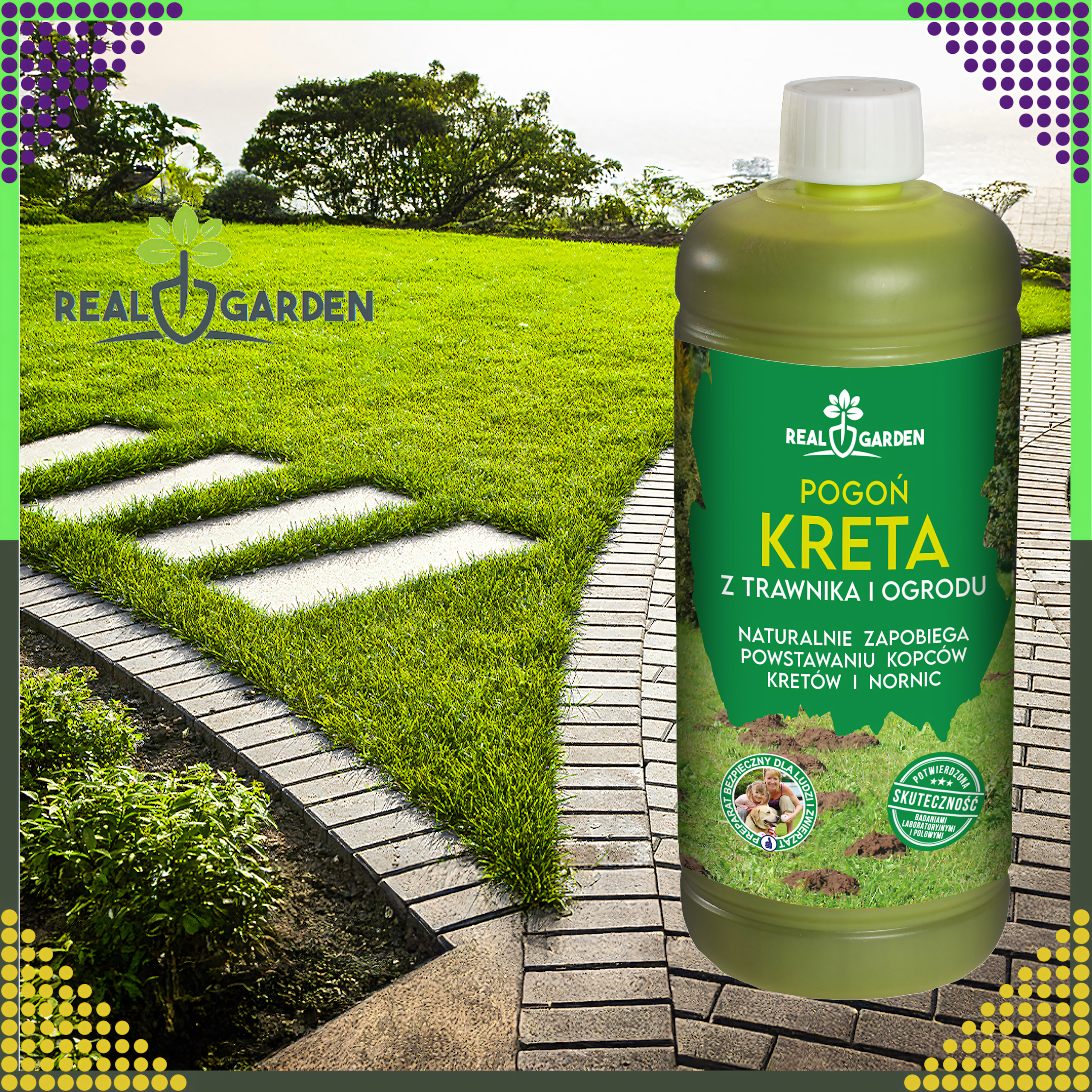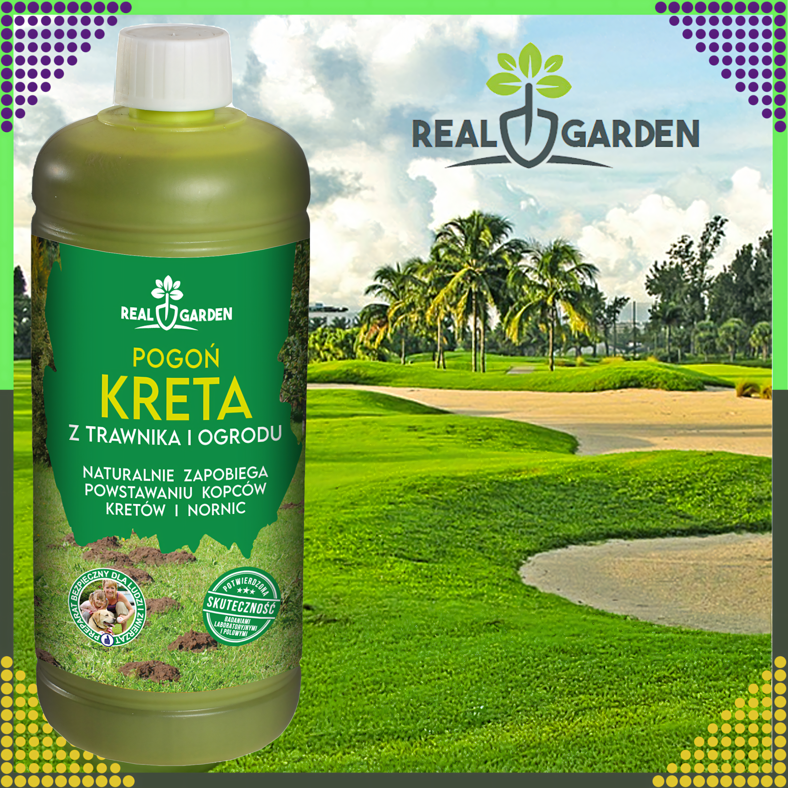 Preparat „Piękny ogród bez kreta” to innowacyjny płynny nawóz mineralno-organiczny, który skutecznie odstrasza krety, nornice i inne drobne gryzonie. Produkt działa na zasadzie oddziaływania na ich powonienie, nie powodując szkody dla zwierząt. Dodatkowo poprawia strukturę gleby, wspomaga wzrost roślin i pomaga obniżyć pH podłoża.