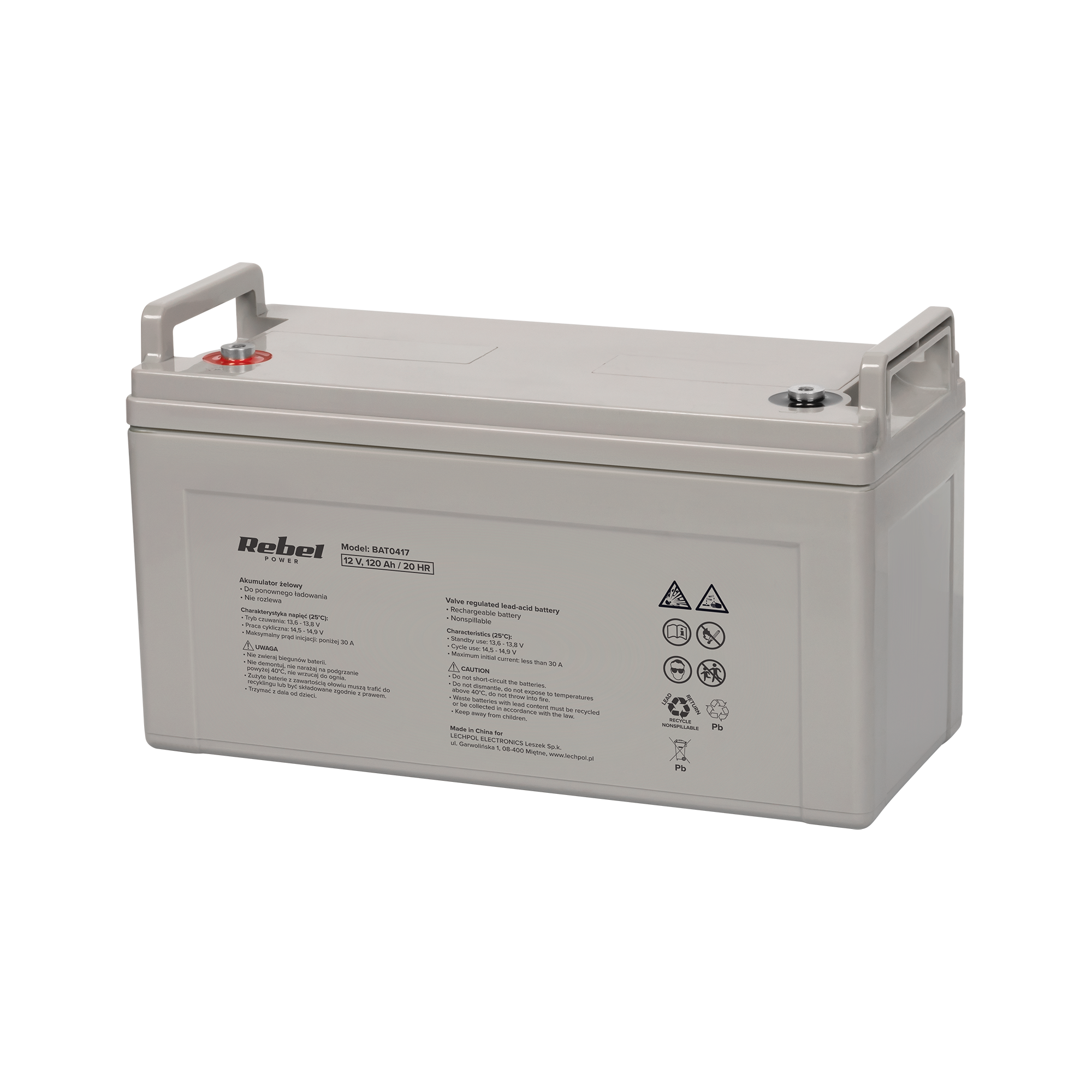 <h2>Akumulator żelowy 12V 120Ah Rebel</h2><p>Akumulator żelowy 12V 120Ah Rebel to wysokiej jakości źródło zasilania, idealne do zastosowań w systemach awaryjnego zasilania, instalacjach solarnych, kamperach, łodziach oraz innych urządzeniach wymagających stabilnej mocy i długiej żywotności. Dzięki swojej żelowej konstrukcji akumulator oferuje niezawodność i odporność na głębokie rozładowania.</p>