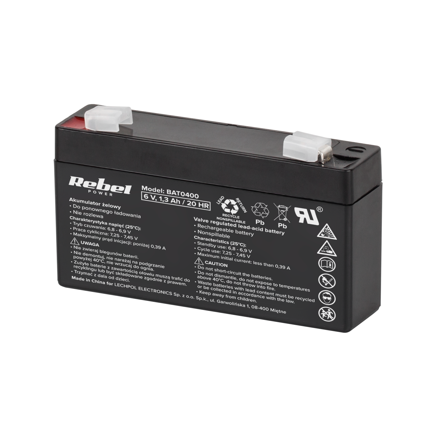 <h2>Akumulator żelowy Rebel Power 6 V / 1,3 Ah</h2><p>Akumulatory żelowe stały się alternatywą dla klasycznych akumulatorów kwasowo-ołowiowych. W przeciwieństwie do tych drugich, modele żelowe są akumulatorami bezobsługowymi. Oznacza to, że nie wymagają one uzupełniania elektrolitu. To, co przemawia na ich korzyść to szczelna obudowa oraz elektrolit w formie żelu. Daje to gwarancję, że nie będzie on wyciekał, dzięki czemu akumulator może być przetrzymywany w dowolnej pozycji i jest bardziej odporny na wstrząsy.</p>