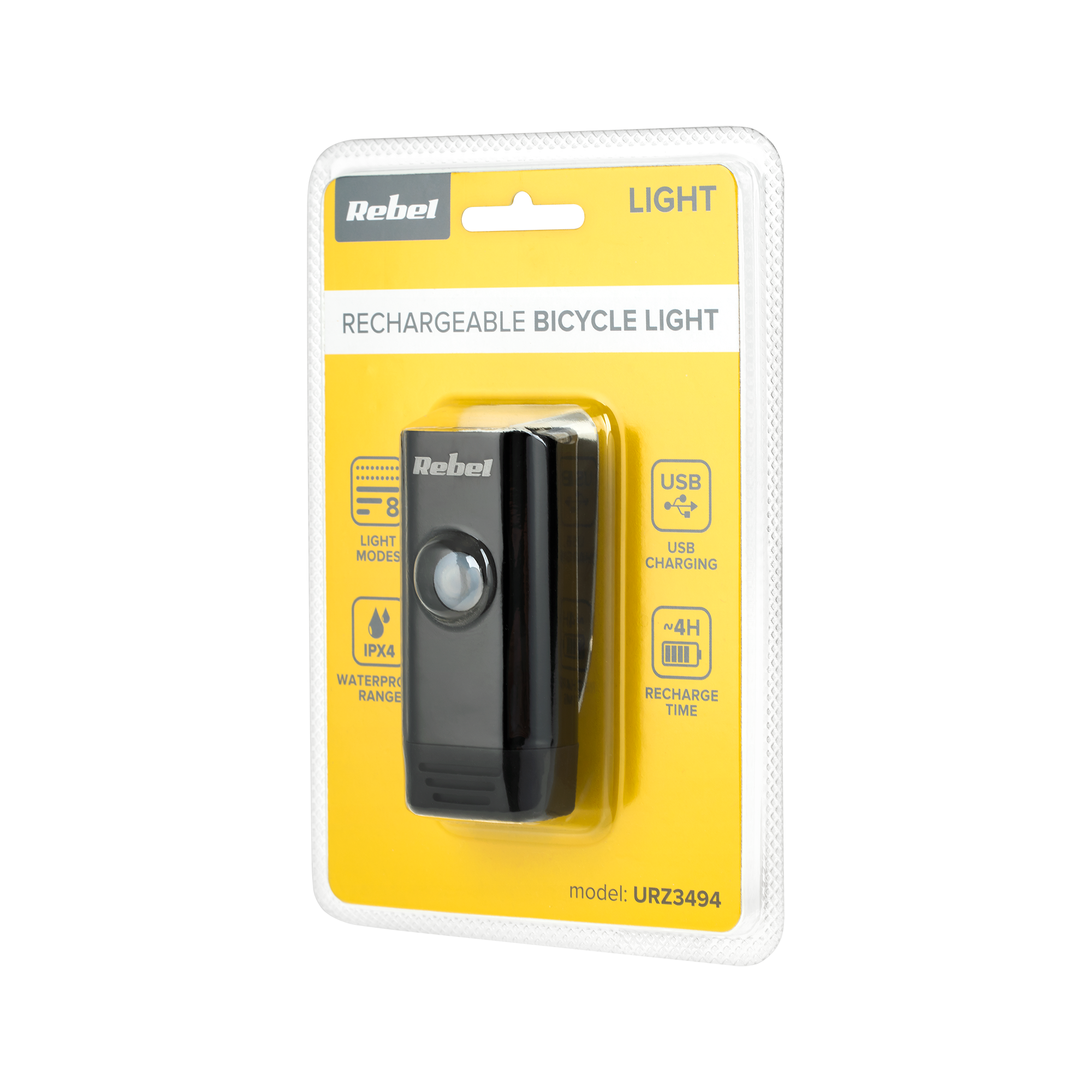<h2>Lampka na rower przednia Rebel</h2><p>Lubisz jeździć rowerem po zmroku? Lampka na rower Rebel to urządzenie idealne dla Ciebie. Jest to przednie światło rowerowe z dwiema diodami LED o mocy 5 W, które wykorzystując strumień 400 lm doskonale oświetla drogę w zasięgu 100 m.</p>