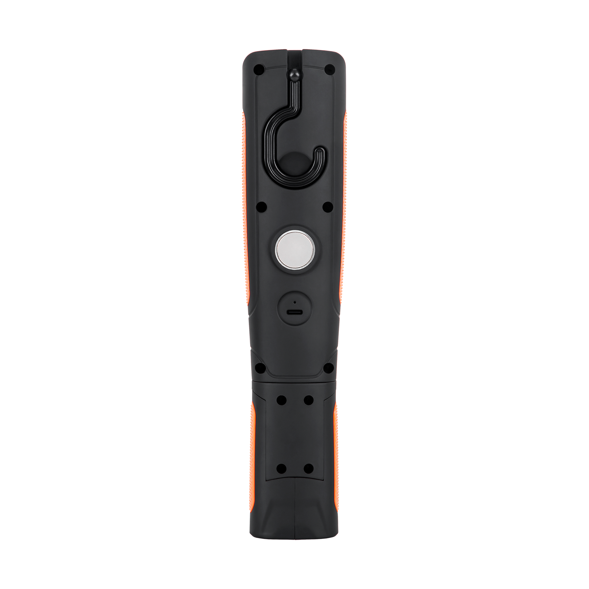 <h2>Praktyczne funkcje i łatwość montażu</h2><p>Lampa wyposażona jest w hak do zawieszenia oraz dwa magnesy, które umożliwiają jej łatwe mocowanie w dowolnym miejscu. Obrotowy uchwyt 360° oraz składana podstawka 180° pozwalają na precyzyjne skierowanie światła tam, gdzie jest potrzebne, zapewniając pełną swobodę podczas pracy.</p>