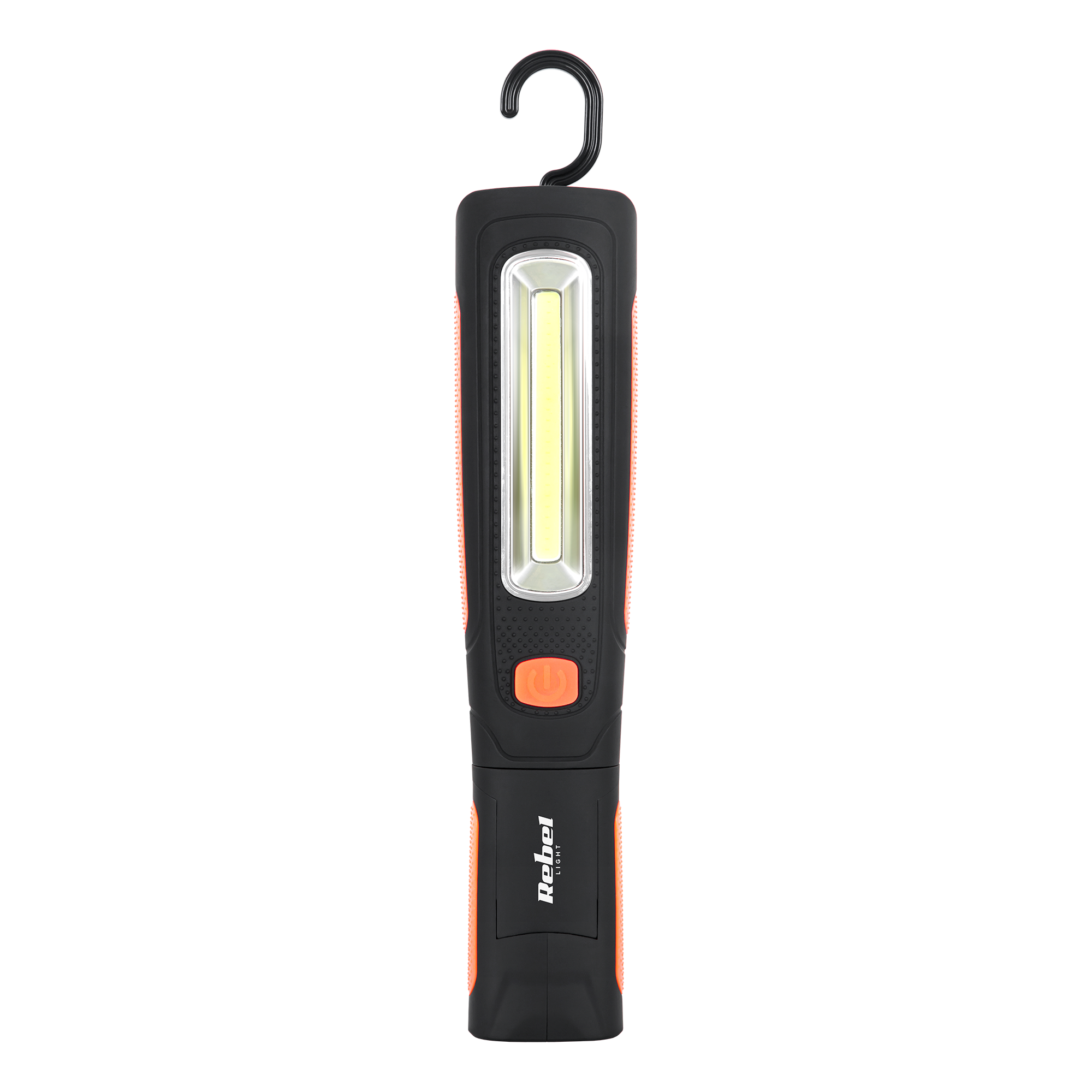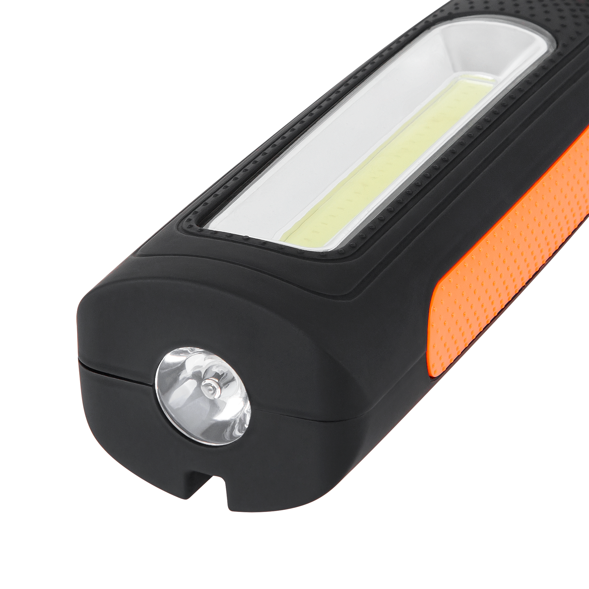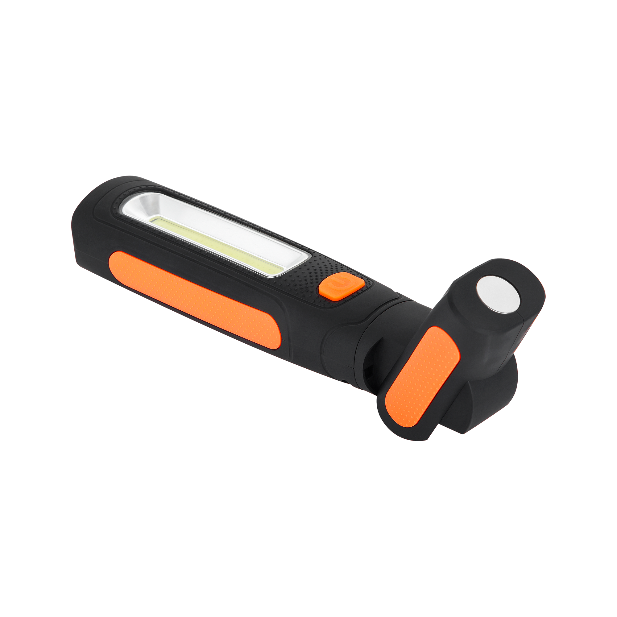 <h2>Wydajne oświetlenie LED</h2><p>Lampa warsztatowa wykorzystuje jedną diodę COB na przodzie o strumieniu światła 220 lumenów oraz dodatkową diodę LED na górze o strumieniu 60 lumenów. Dioda COB zapewnia zasięg świecenia do 20 metrów, idealny do oświetlenia bliskiego obszaru roboczego, natomiast dioda LED na górze świeci na odległość do 50 metrów, co jest przydatne przy bardziej szczegółowych pracach. Całkowita moc lampy to 3 W (COB) oraz 1 W (LED).</p>