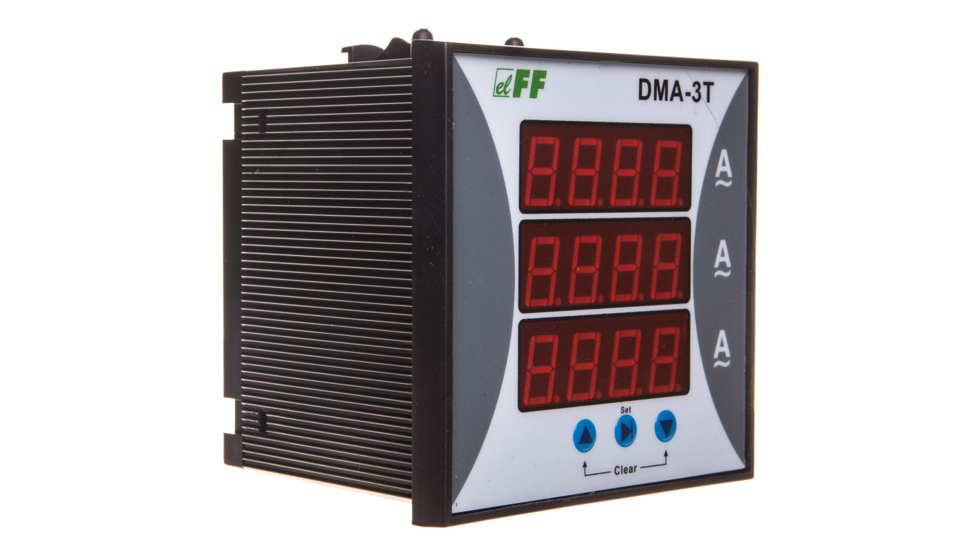 Amperomierz 3-fazowy cyfrowy tablicowy 0-9000A dokładność 1 96x96mm do pracy z przekładnikiem 5A DMA-3T
