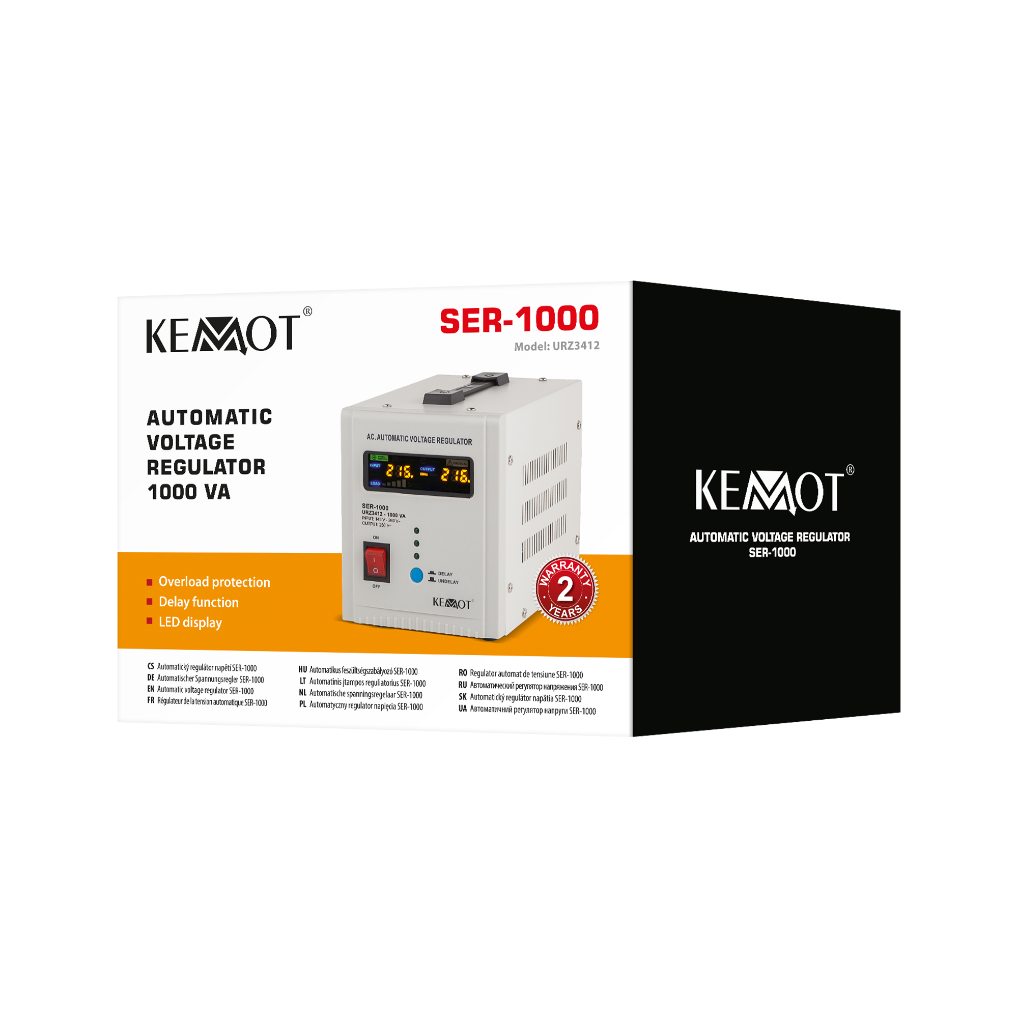 <h2>Zabezpiecz swoje urządzenia przed skokami napięcia</h2><p>Niezależnie od obciążenia sieci i wahań napięcia wyjściowego, stabilizator KEMOT SER-1000 utrzymuje je na poziomie 230 V ±3%, pozwalając na wydajną pracę wszystkich urządzeń, w tym tych wrażliwych na jakość napięcia sieci. Regulacja odbywa się automatycznie, co zapewnia wysoką dokładność napięcia wyjściowego. KEMOT SER-1000 znajdzie zastosowanie w warunkach domowych, jak i biurowych, idealnie sprawdzając się do telewizorów i sprzętu RTV, a także kolumn głośnikowych, miniwież i innych urządzeń audio/video, czy komputerów.</p>