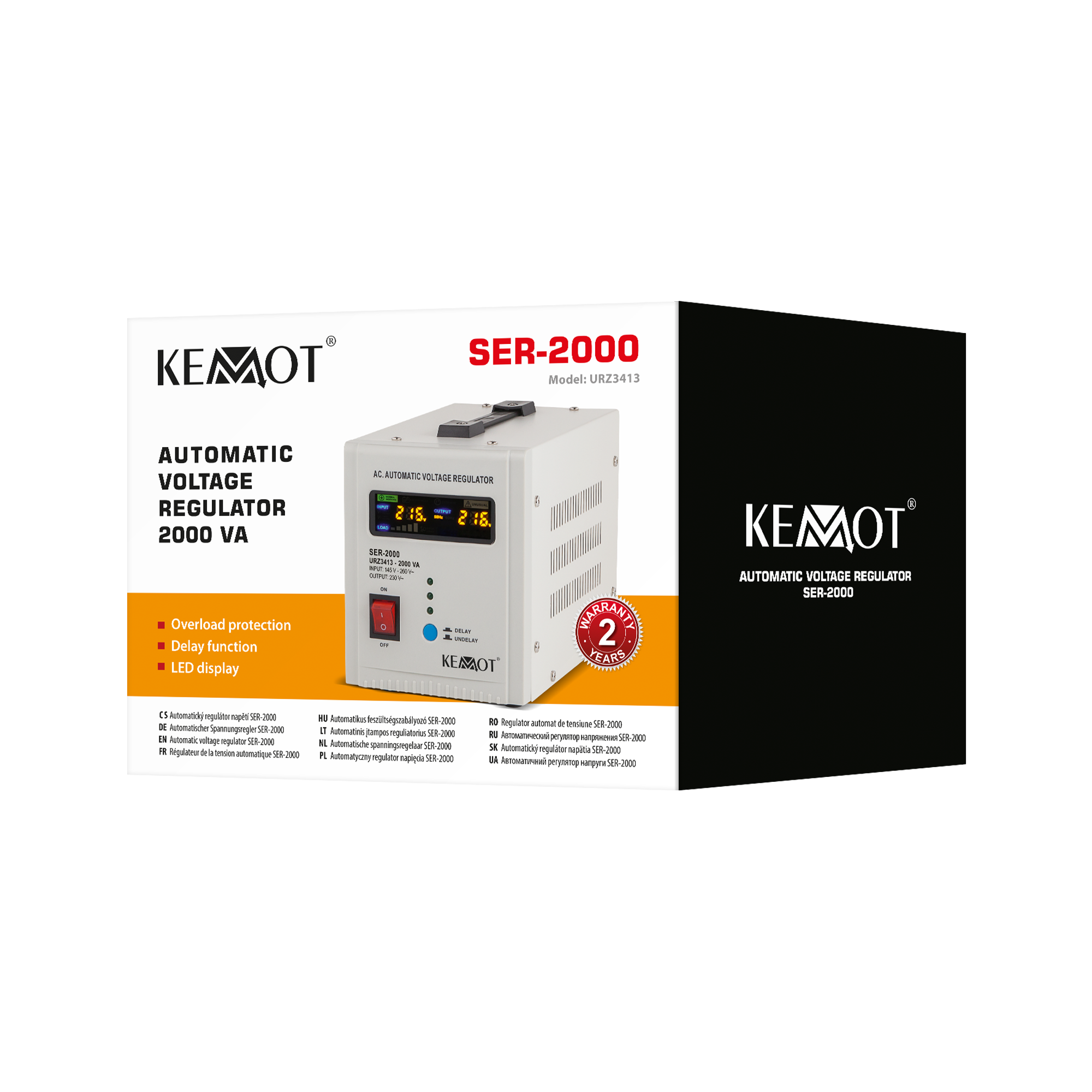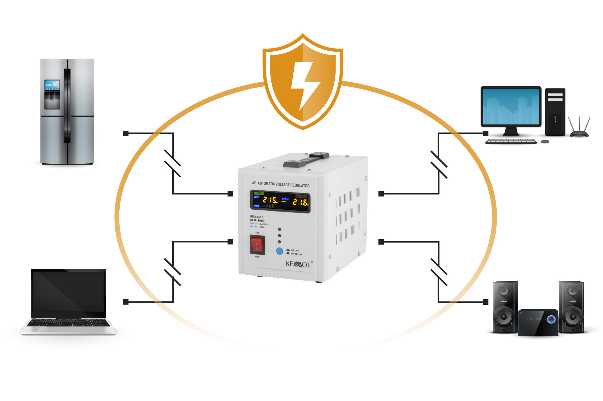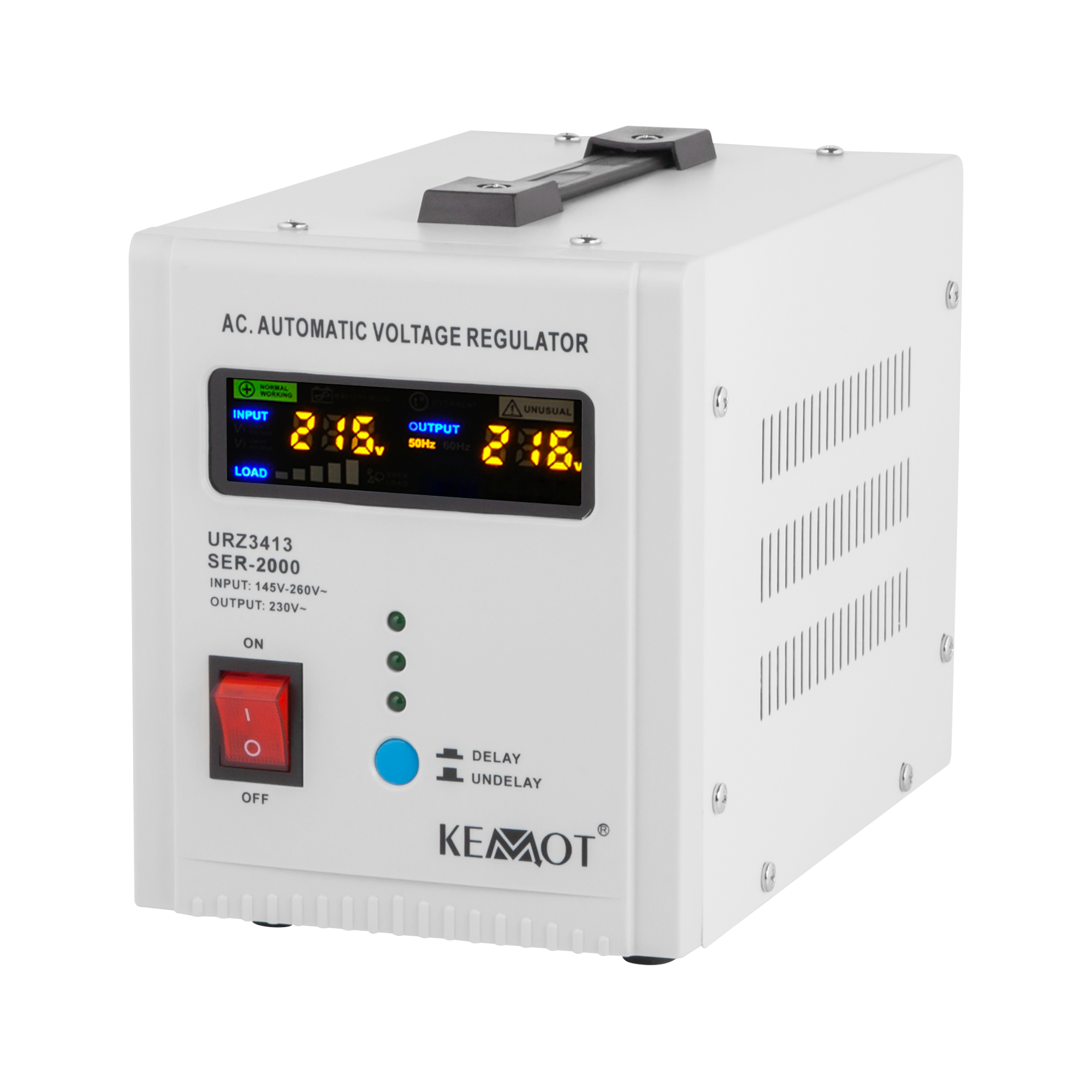 <h2>Zabezpiecz swoje urządzenia przed skokami napięcia</h2><p>Niezależnie od obciążenia sieci i wahań napięcia wyjściowego, stabilizator KEMOT SER-2000 utrzymuje je na poziomie 230 V ±5%, pozwalając na wydajną pracę wszystkich urządzeń, w tym tych wrażliwych na jakość napięcia sieci. Regulacja odbywa się automatycznie, co zapewnia wysoką dokładność napięcia wyjściowego. KEMOT SER-2000 znajdzie zastosowanie w warunkach domowych, jak i biurowych, idealnie sprawdzając się do telewizorów i sprzętu RTV, a także kolumn głośnikowych, miniwież i innych urządzeń audio/video, czy komputerów.</p>