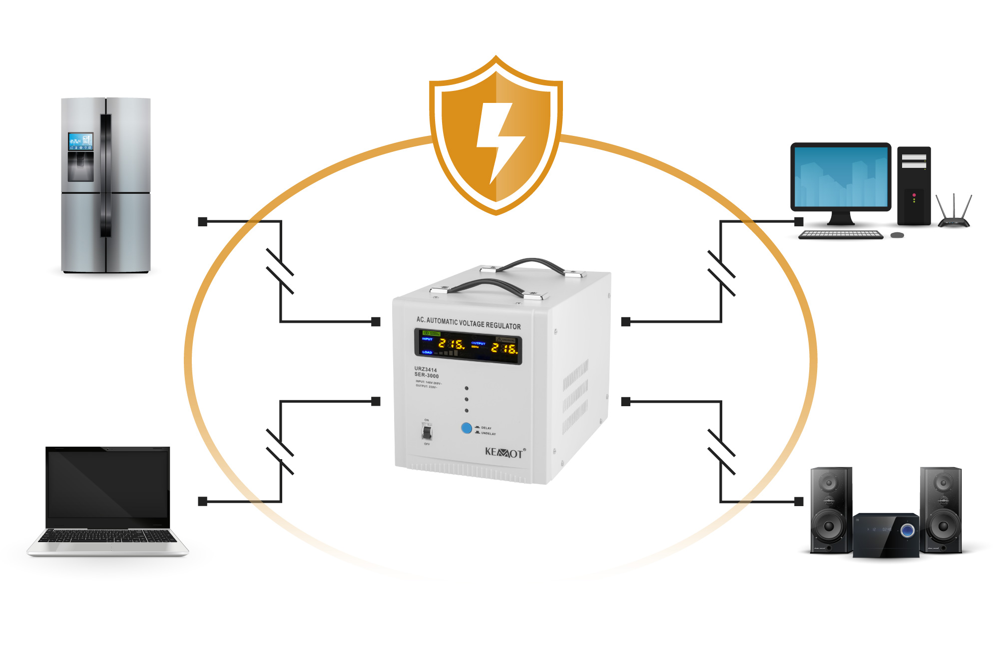 <h2>Zabezpiecz swoje urządzenia przed skokami napięcia</h2><p>Niezależnie od obciążenia sieci i wahań napięcia wyjściowego, stabilizator KEMOT SER-2000 utrzymuje je na poziomie 230 V ±3%, pozwalając na wydajną pracę wszystkich urządzeń, w tym tych wrażliwych na jakość napięcia sieci. Regulacja odbywa się automatycznie, co zapewnia wysoką dokładność napięcia wyjściowego. KEMOT SER-2000 znajdzie zastosowanie w warunkach domowych, jak i biurowych, idealnie sprawdzając się do telewizorów i sprzętu RTV, a także kolumn głośnikowych, miniwież i innych urządzeń audio/video, czy komputerów.</p>