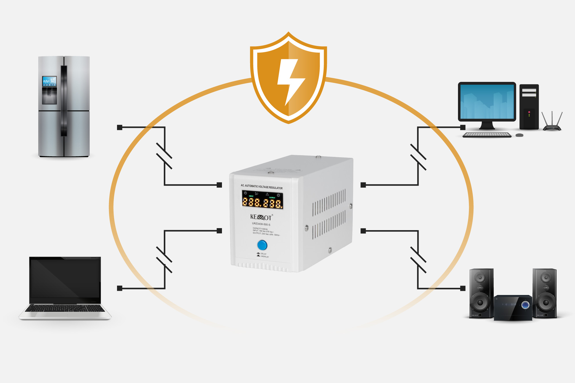 <h2>Zabezpiecz swoje urządzenia przed skokami napięcia</h2><p>Niezależnie od obciążenia sieci i wahań napięcia wyjściowego, stabilizator KEMOT SER-500-S utrzymuje je na poziomie 230 V ±8%, pozwalając na wydajną pracę wszystkich urządzeń, w tym tych wrażliwych na jakość napięcia sieci. Regulacja odbywa się automatycznie, co zapewnia wysoką dokładność napięcia wyjściowego. KEMOT SER-500-S znajdzie zastosowanie w warunkach domowych, jak i biurowych, idealnie sprawdzając się do telewizorów i sprzętu RTV, a także kolumn głośnikowych, miniwież i innych urządzeń audio/video, czy komputerów.</p>
