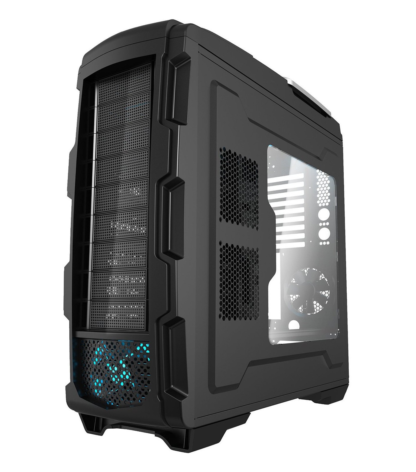 - 2x 230 mm (góra) (1x 230 mm niebieski LED, zainstalowany) 24 dBA, wylot
