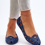 Damskie baleriny zostały wykonane z gumowego tworzywa. Ozdobny fason z przeplatających się pasków. Baleriny osadzone są na płaskim obcasie. Nosek w kształcie migdała. Model ten świetnie sprawdzi się w upalne dni!