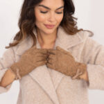 Dzianinowy beret z ciekawą aplikacją z dżetów.