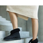 Beżowe materiałowe ocieplane kozaki Palmer – Solea