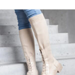 Beżowe wsuwane kozaki z materiałową elastyczną cholewką Luana – Solea
