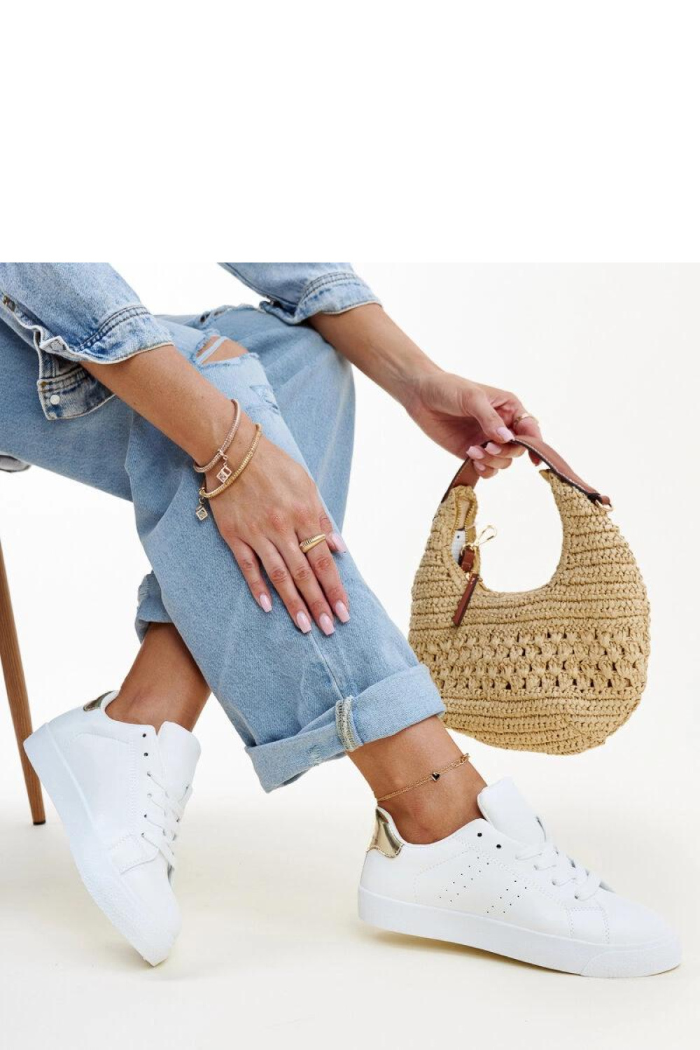 Białe sneakersy Akila w kolorze złotym to innowacyjna propozycja w dziedzinie obuwia, zachwycająca swoim unikalnym designem. Z sznurowaniem, niskie i z zaokrąglonym noskiem, są idealnym wyborem dla tych, którzy cenią współczesny styl i komfort noszenia. Wykonane z wysokiej jakości gumy, gwarantują trwałość i wygodę na wiele sezonów. Dzięki swoim unikalnym kolorom białym i złotym, te adidasy są doskonałym uzupełnieniem każdej casualowej stylizacji. Materiał zewnętrzny: Skóra ekologiczna zamszowa Ocieplenie: Brak Materiał podeszwy: Guma Kolor podeszwy: Biały Zapięcie: Sznurowane Kolekcja: Wiosna/Lato