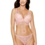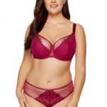 Zmysłowy półgorset push-up pięknie eksponuje biust nadając piersiom ładny, zaokrąglony kształt. Wykonany z delikatnej koronki o kwiatowym wzorze. Miski dwuczęściowe, uszyte z cienkiej pianki gorseciarskiej. Wewnętrzna część miseczek wyściełana bawełną. Wewnątrz miseczek wyjmowane wkładki push-up, umieszczone w specjalnie przeznaczonych do tego kieszonkach. Regulowane, nieodpinane ramiączka. Plecy wykonane z koronki. Pomiędzy miseczkami umieszczona jest elegancka ozdoba.