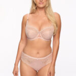 Cudownie kobiecy, model Keto z półusztywnianymi miseczkami. Doskonale znana konstrukcja SS10, bardzo ładnie zbiera piersi. Beżowy kolor niezwykle komponuje się z delikatną dla skóry koronką połączoną z nierozciągliwym tiulem. Wzór na bieliźnie jest wyjątkowy. Ozdobne, koronkowe wyjście na ramiączko, pogłębione miseczki, idealnie podtrzymują biust. Materiały wysokiej jakości zapewniające idealne podtrzymanie, półotwarta linia dekoltu i podwyższony krój, zapobiegają wypadaniu piersi podczas ruchu. Podwyższony krój i środek przylegający do mostka gwarantują dobre podparcie piersi, konstrukcja SS10 jest jedną z najbardziej docenianą wśród kobiet.