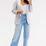 Krótka bluza typu bomberka z kapturem, ozdobnymi ściągaczami w paski, zapinana na białe napy. Po bokach kieszenie wsuwane.