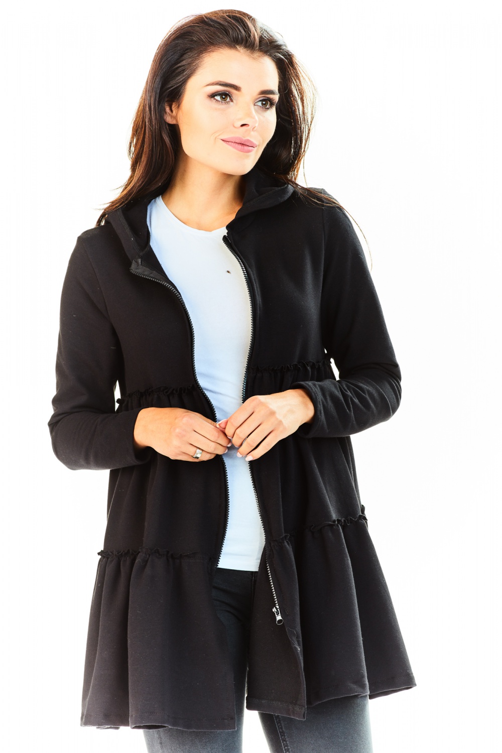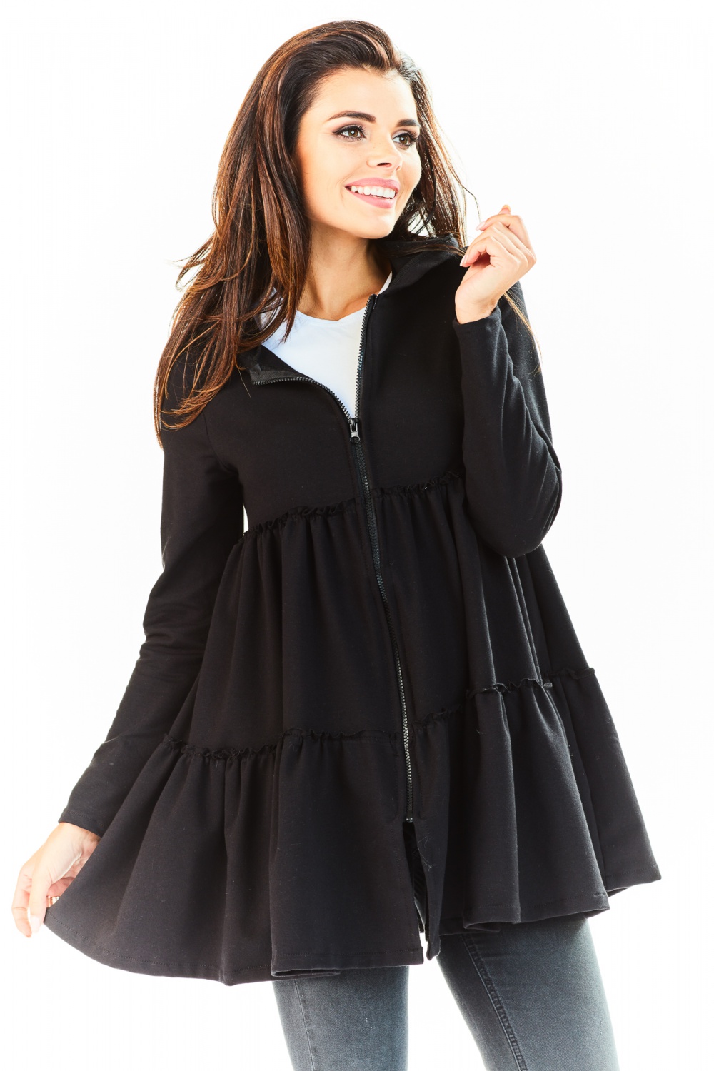 Bluza damska o luźnym kroju w kolorze czarnym. Bluza zapinana na zamek. Bluza z kapturem idealna do wielu stylizacji.