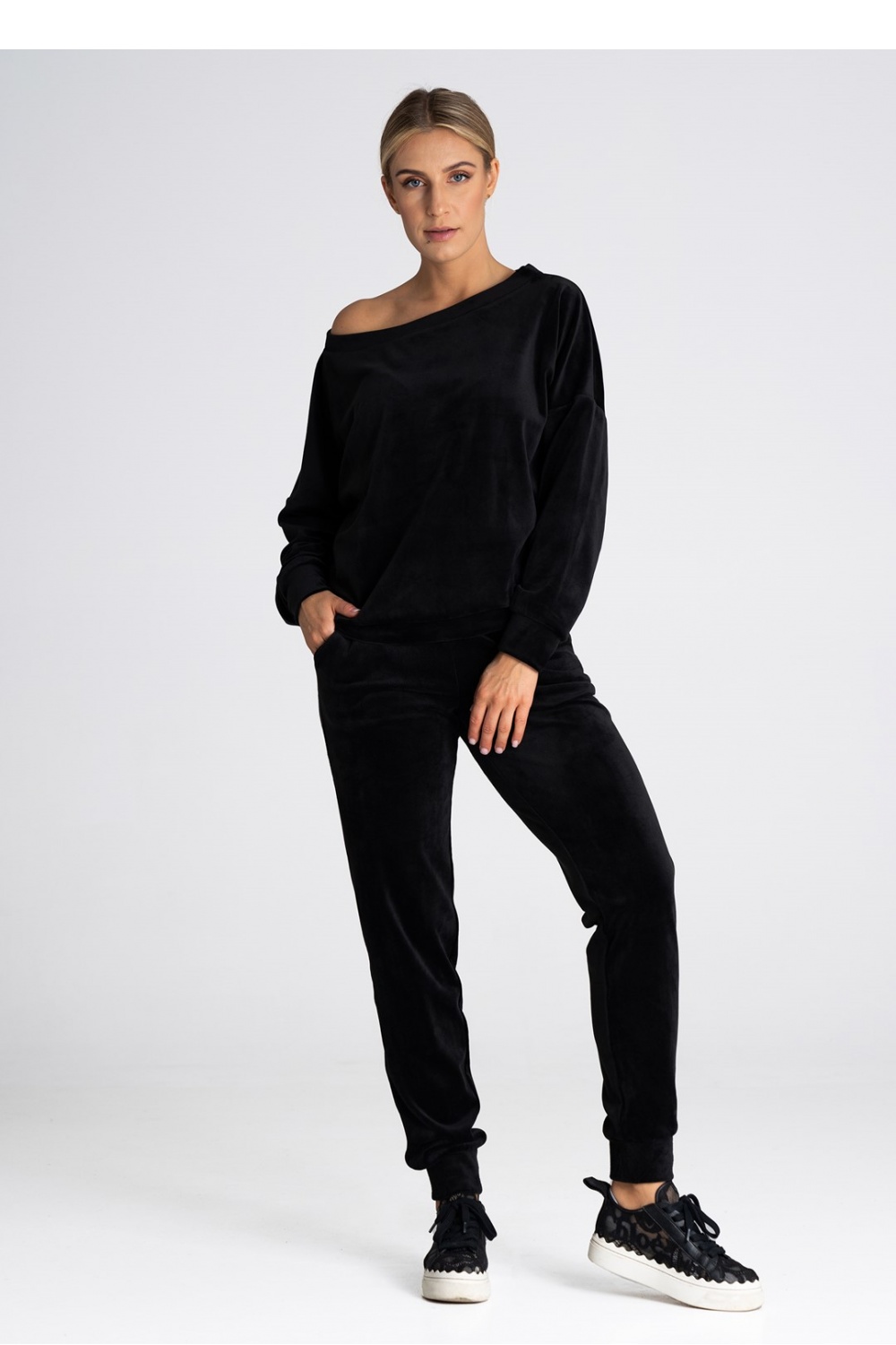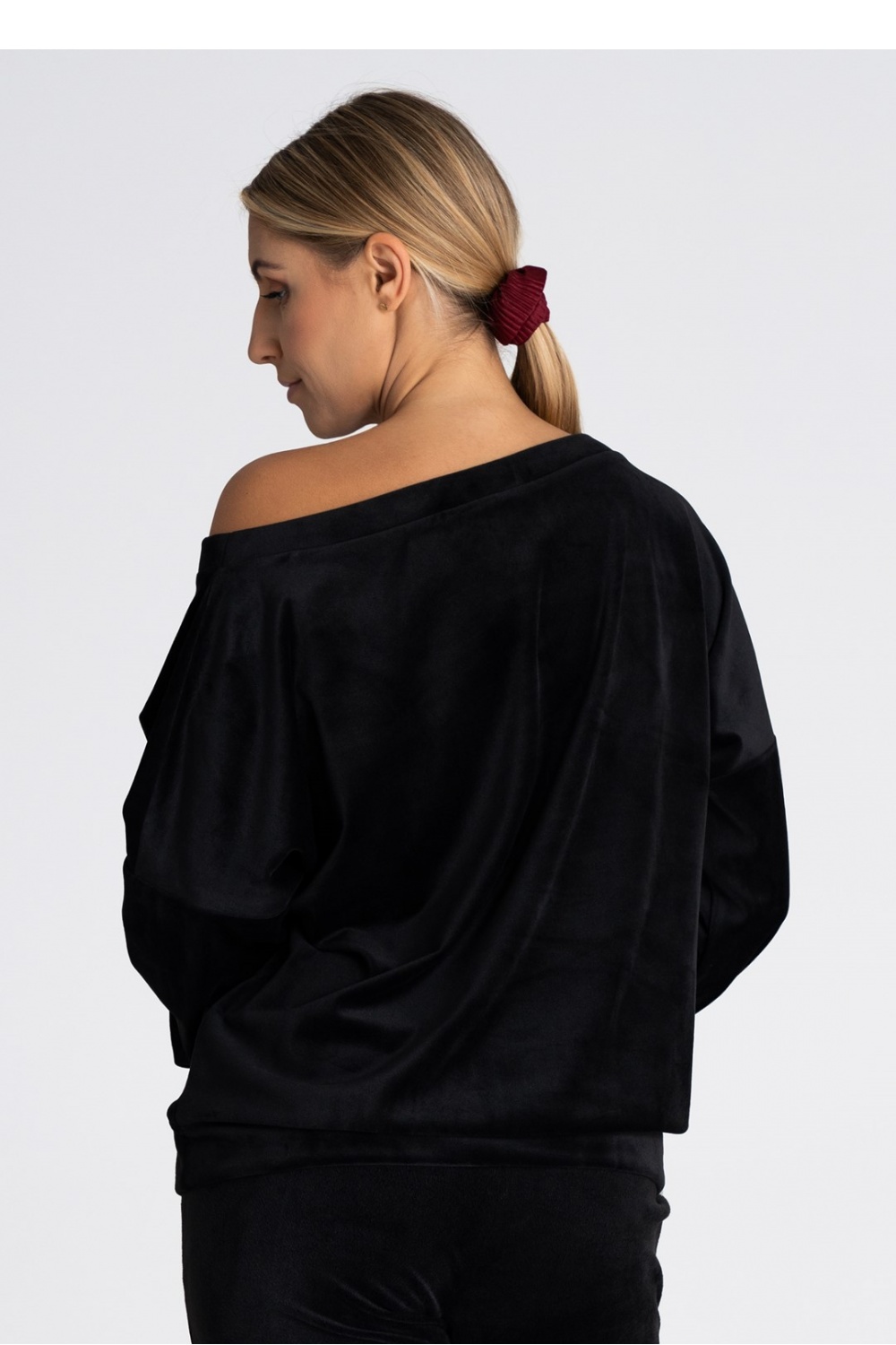 Oversizowa bluza z dekoltem w łódkę. Można ją nosić na jedno lub oba ramiona. Pięknie wykończona delikatnymi mankietami.