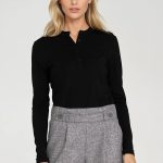 Bluzka o kroju regularnym zachwyca swoją prostotą i elegancją. Wykonana z przyjemnego wiskozowego materiału, zapewniającego komfort noszenia i swobodę ruchów. Jej głęboki, a zarazem subtelny dekolt w kształcie litery V nadaje całości wyrafinowanego wyglądu. Bezrękawnik jest idealnym wyborem na ciepłe dni, dodając lekkości i świeżości każdej stylizacji. Niezwykle kobiece i stylowe wykończenie ramion oraz dekoltu w postaci delikatnej pliski nadaje bluzce subtelnego uroku i unikalnego charakteru. Jest to idealny wybór dla osób ceniących sobie zarówno klasykę, jak i odrobinę ekstrawagancji. Ta bluzka, wkładana przez głowę, będzie doskonałym uzupełnieniem garderoby, nadając niepowtarzalny styl każdej kobiecej kreacji.