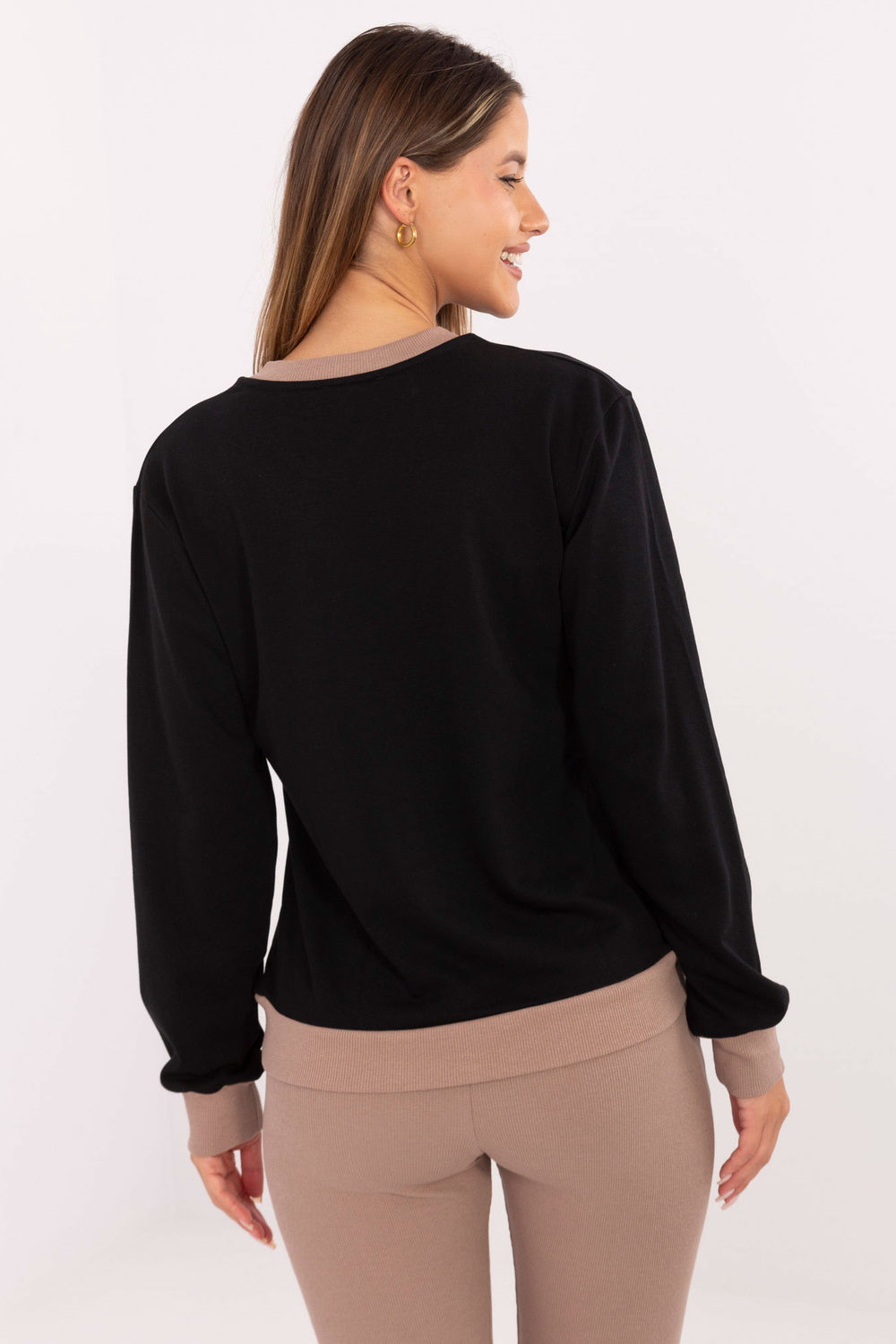 Casualowa bluza damska wykonana z miękkiej mieszanki bawełny i poliestru, łącząca komfort noszenia z modnym designem. Klasyczny okrągły dekolt i długie rękawy zapewniają wygodę, a standardowa długość sprawia, że bluza doskonale pasuje do codziennych stylizacji. Przód zdobi subtelny haft, który nadaje całości eleganckiego charakteru, a kontrastowe wykończenia dodają nowoczesnego, wyrazistego akcentu. Model bez zapięcia, idealny do casualowych zestawów na co dzień.
