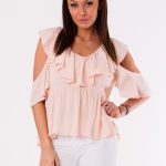 Bluzka bez ramion. Bluzka posiada ozdobne falbany.