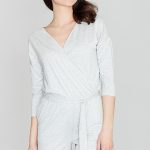 Lekko oversizeowa forma pozwala tuszować niedoskonałości figury. Linia z delikatnie dłuższym tyłem, krótkie rękawy wykończone mankietem. Dekolt okrągły, blisko szyi, zapinana z tyłu na kryty suwak. Z przodu kontrafałdy.