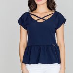 Bluzka damska z długim wiązanym rękawem, dekolt w serek, na plecach efektowne wiązanie.