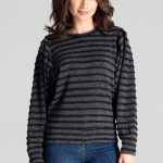 Dopasowana bluzka w paski z długim rękawem z siatki zakończonym mankietem.