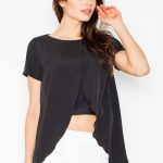 Prosta bluzka z krótkim rękawkiem zapinana na kryty zamek. Bluzka ozdobiona wstawkami z siatki.