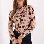 Elegancka bluzka damska z falbankami na przodzie i subtelnym żabotem to idealna propozycja do pracy, na spotkania wizytowe oraz na codzienne wyjścia. Wykonana z wysokiej jakości mieszanki poliestru, wiskozy i elastanu, łączy komfort noszenia z trwałością materiału. Gładki wzór i standardowa długość zapewniają klasyczny wygląd, a bufiaste rękawy dodają całości kobiecego wdzięku i lekkości. Model bez zapięcia pozwala na wygodne zakładanie, a efektowne detale falban i żabotu nadają bluzce eleganckiego i stylowego charakteru.