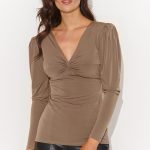 Bluzka damska o dopasowanym kroju, to doskonała baza pozwalająca zbudować wiele unikatowych stylizacji. Bluzka posiada dekolt w kształcie litery V, który dodatkowo wydłuży sylwetkę, natomiast bufiaste rękawy poszerzą optycznie ramiona i dodadzą kobiecości. Dzięki tym charakterystycznym elementom, bluzka prezentuje się niezwykle modnie i nieco romantycznie. Akcent metalowej blaszki w górnej części pleców, dodatkowo dodaje jej nuty elegancji. Możesz ją zestawić z rozkloszowaną spódnicą jeśli chcesz zrównoważyć sylwetkę lub z dopasowanymi spodniami i outfit do pracy jak i na wieczorne wyjścia masz gotowy. Szeroki wybór kolorów, umożliwi Ci wybranie takiego, który idealnie wkomponuje się w Twoją garderobę.