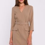 Elegancka bluzka z tkaniny satynowej, zakładana przez głowę, wyposażona w stójkę, która dodaje szyku. Dekolt zdobi subtelne, ozdobne przeszycie, a na piersi znajduje się praktyczna kieszonka. Długie rękawy zakończone są mankietami zapinanymi na jeden guzik, co podkreśla dbałość o detale. Dół bluzki ma półokrągłe wykończenie, z przodem krótszym niż tył, co nadaje jej nowoczesnego i stylowego wyglądu. Bluzka została zaprojektowana i uszyta w Polsce, idealna do eleganckich i casualowych stylizacji.