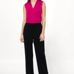 Stylowa koszula damska o kroju bluzki w fasonie regular, wykonana z lekkiej i przewiewnej wiskozy. Model posiada wiązanie pod szyją z delikatnym rozcięciem na dekolcie, które nadaje całości subtelnej elegancji i kobiecego charakteru. Koszula ma długie rękawy i jest rozpinana na guziki, co pozwala na dowolne dopasowanie fasonu. Dodatkowo, delikatne marszczenia przy stójce wprowadzają subtelny detal, podkreślający nowoczesny styl. Idealna do biura, jak i na casualowe okazje.