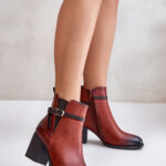 Damskie botki ze skóry naturalnej na platformie to idealne połączenie stylu i funkcjonalności. Posiadają zarówno sznurowanie, jak i zamek, co zapewnia wygodę zakładania i dopasowanie do stopy. Zaokrąglone noski dodają subtelności, a ozdoba w postaci agrafki wprowadza unikalny akcent. Wnętrze ocieplone kocem obuwniczym gwarantuje ciepło i komfort, sprawiając, że są doskonałym wyborem na chłodniejsze dni.