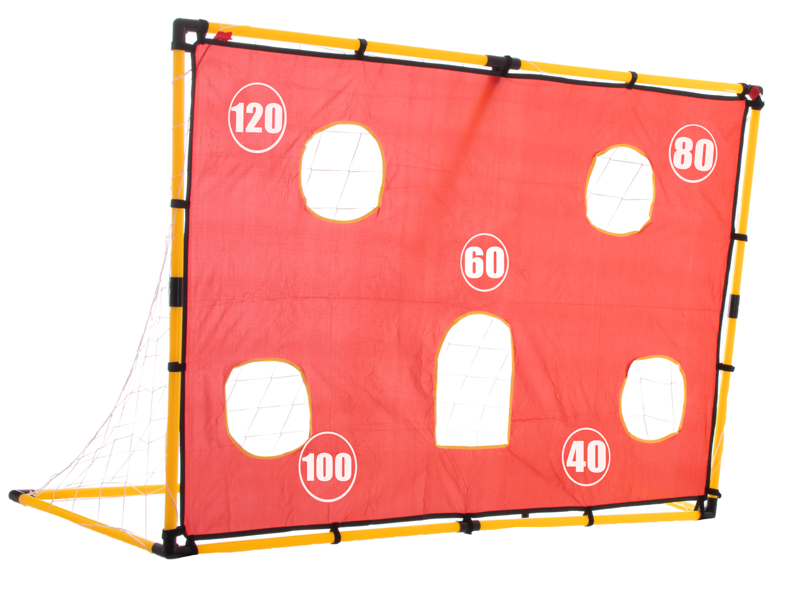 Rewelacyjna bramka do gry w piłkę nożną. Idealna dla fana piłkarskich rozgrywek. Do bramki dołączona jest mata celownicza urozmaicająca zabawę lub trening. W zestawie: elementy do złożenia bramki, piłka, pompka do piłki. Wym. bramki: 156x70x107cm.