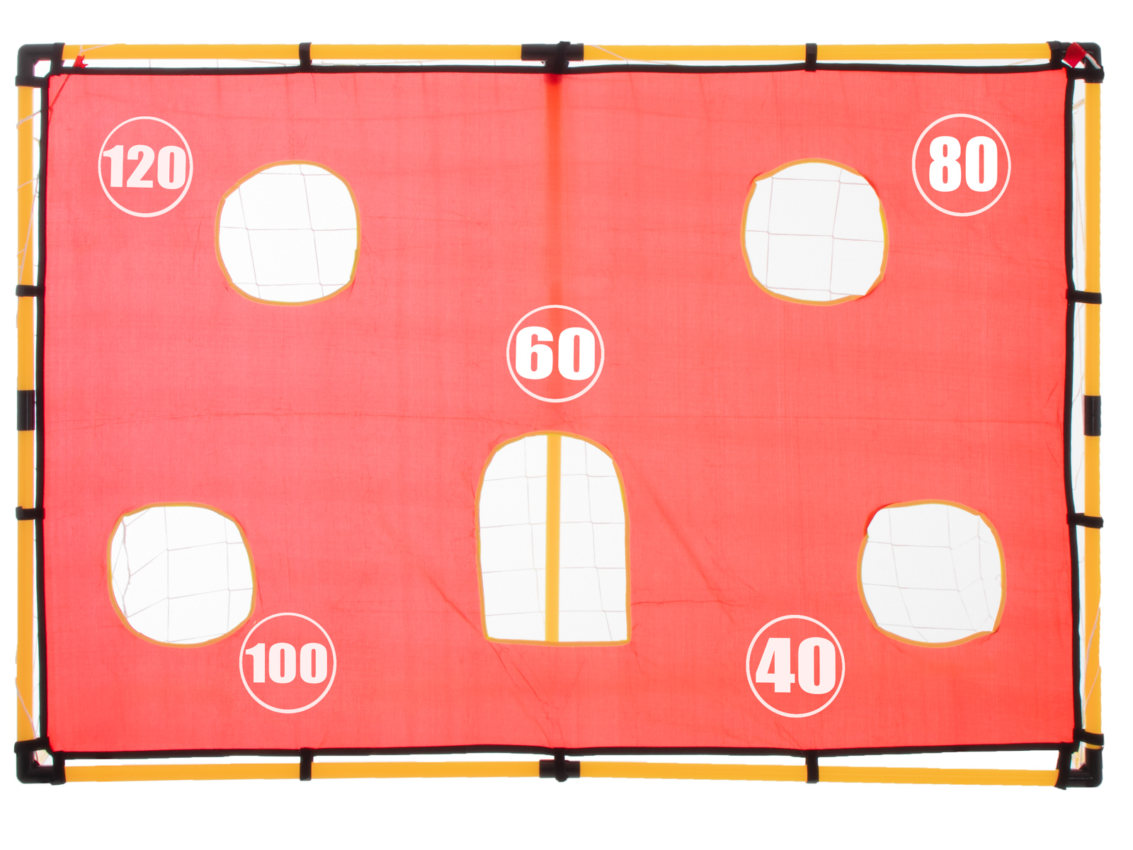 Duża bramka z matą, w której zostały wycięte otwory umożliwi
