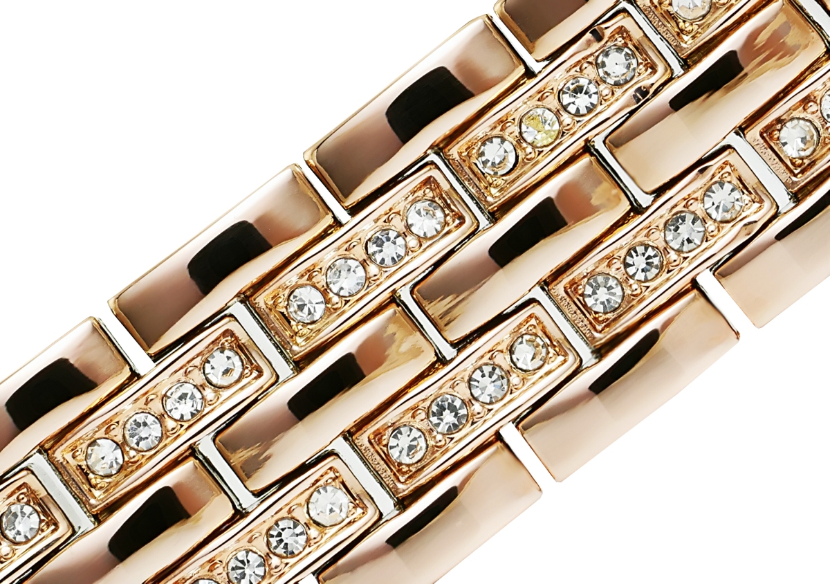 Kolor: różowe złoto ozdobione lśniącymi kryształkami