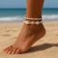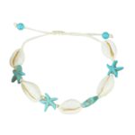 Bransoletka 2w1 na stopę MUSZELKI na sznurku, rozgwiazda PEREŁKI B544
