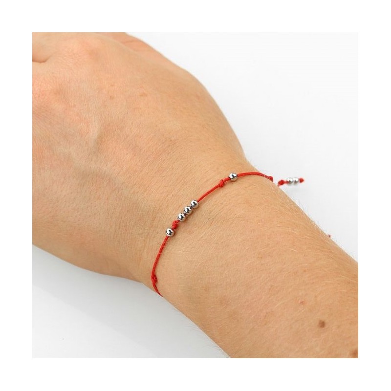 Bransoletka czerwony sznurek DREAM, srebrne kulki BST815
