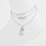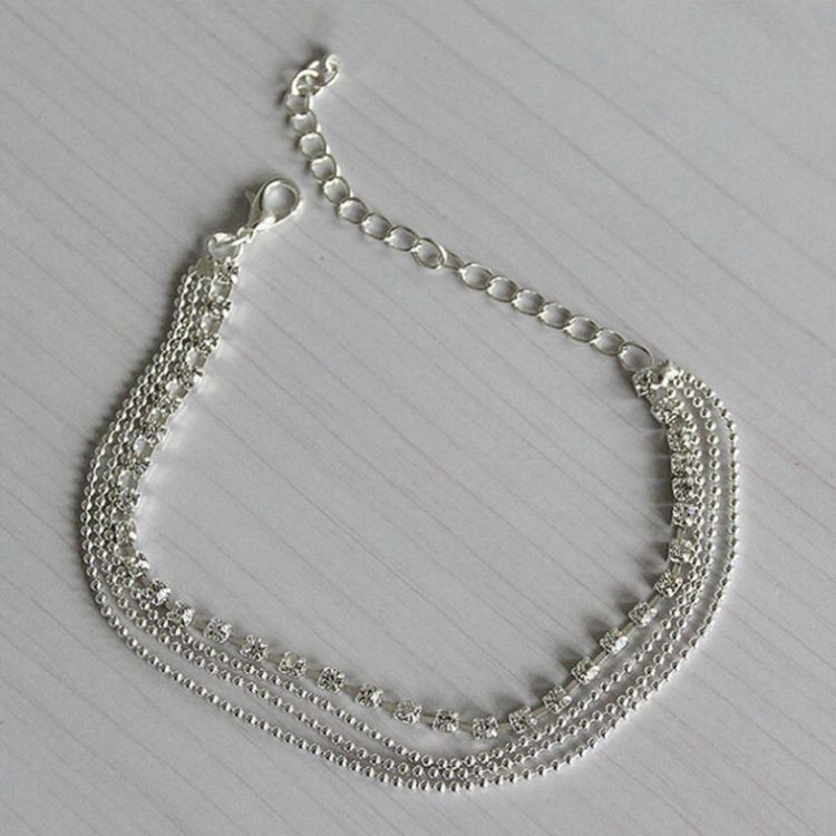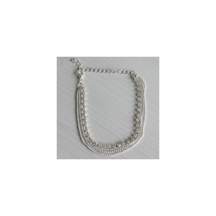 BRANSOLETKA NA STOPĘ Delikatna i efektowna bransoletka na stopę Materiał:metal nieszlachetny nie zawierający chromu i niklu Wymiary:długość: 21,5 cm plus 5 cm regulacji Kolor:SrebrnyZapięcie:karabińczyk