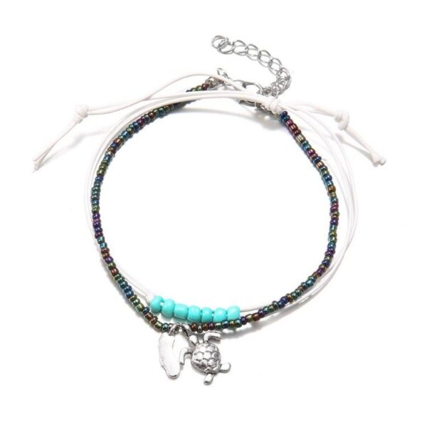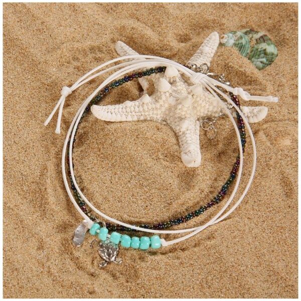BRANSOLETKA NA NOGĘ KOSTKĘ KORALIKI ŻÓŁWIK B213