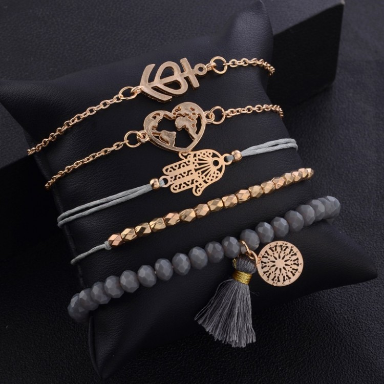 Bransoletka na rękę 5w1 pleciona grafit B327