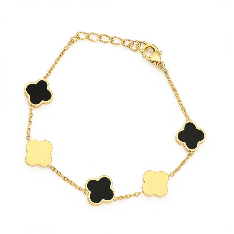 Bransoletka na rękę stal chirurgiczna pozłacana 14k złotem Koniczynki BST1552